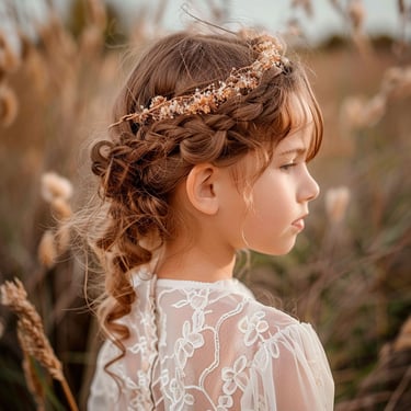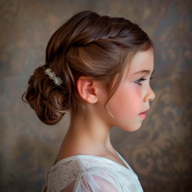 Si tu niña tiene el cabello lacio, una buena opción es un recogido bajo con trenzas o una coleta lateral adornada con una corona trenzada. Estos peinados son elegantes y le darán un toque sofisticado a su look de comunión.